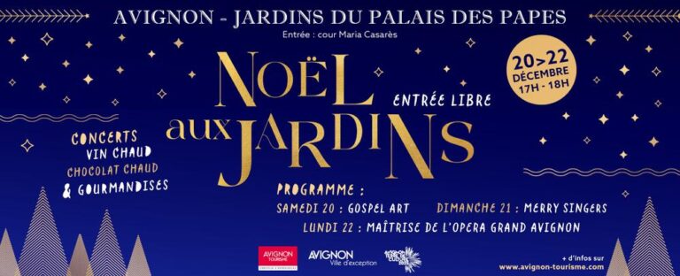 À l’occasion des fêtes de fin d’année, les jardins du Palais des Papes se parent de décorations de Noël et accueillent trois soirées festives mêlant concerts, chants de Noël et douceurs gourmandes.